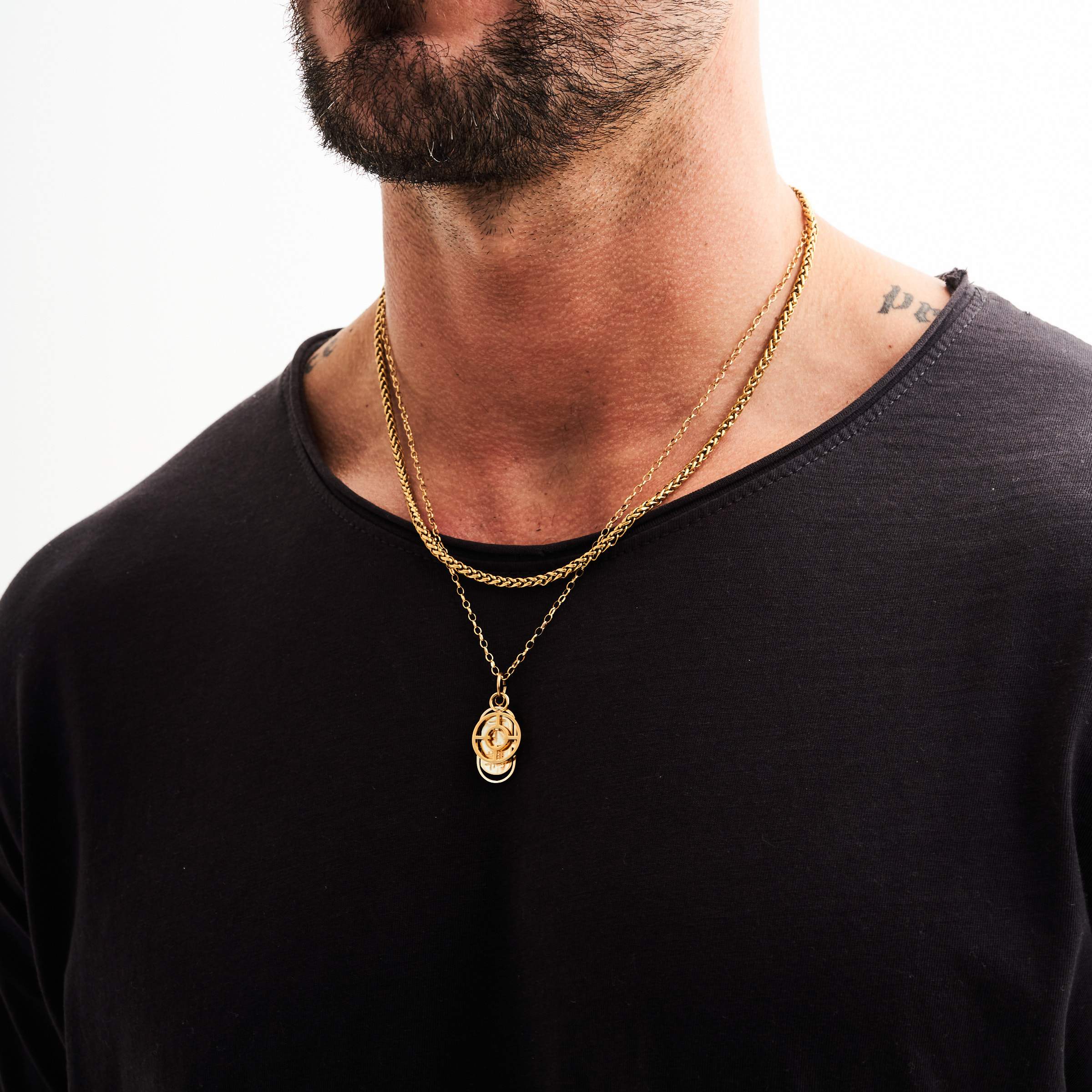 This 18K gold necklace features a finely detailed pendant combining the Chinese symbol for happiness with a bullseye. A reminder that the more you focus on what truly matters, the closer you get to hitting your mark. Every day is another shot. Make it count. It’s suspended from a premium golden bail, a 2mm link chain, and finished with scratch and fade-resistant protection.