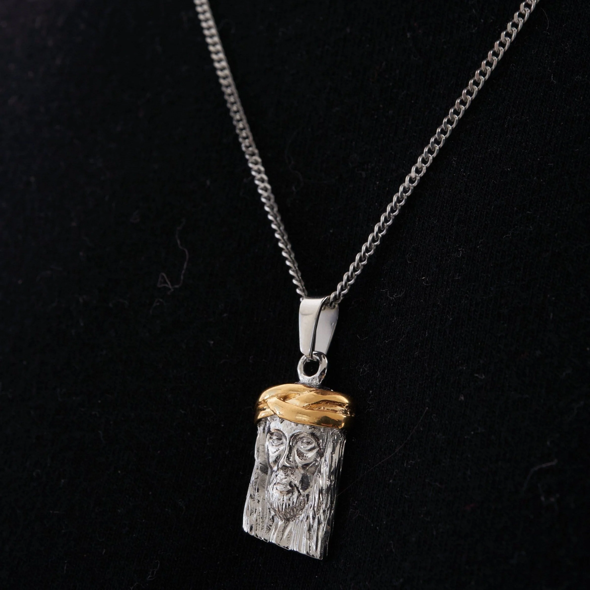This pendant features an intricately hand carved depiction of Jesus, crafted in a bold blend of silver and 18K gold. Worn for decades by icons like Notorious B.I.G. and Jay-Z, it embodies the energy and authenticity of hip hop’s most influential era. Suspended from a premium silver bail and 2mm Cuban chain, it’s finished with scratch and fade resistant protection.